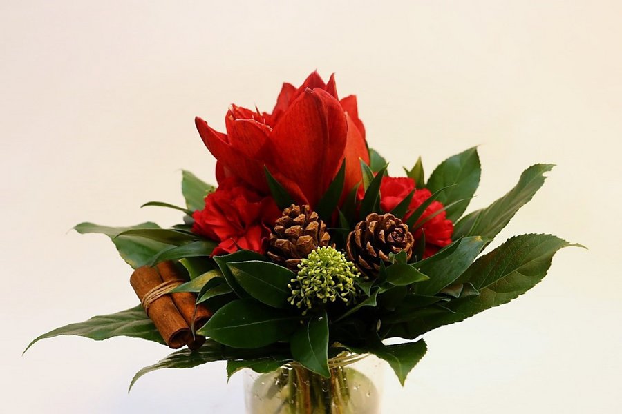 Jätä kimpun suunnittelu ammattilaisen käsiin. Kirjoita lisätietoihin kimpun käyttötarkoitus ja väritoive sekä haluatko korkean vai matalan kimpun. Sidomme kimpun jouluisista kukista myymälän valikoiman mukaan.